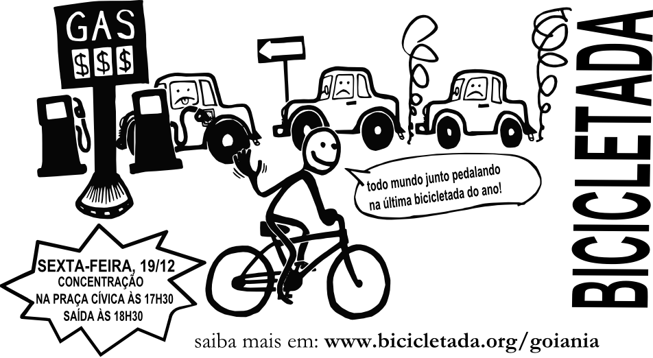 - Participando da nossa Bicicletada que acontece toda última sexta-feira do mês com concentração na Praça Cívica, Centro. Não esqueça de levar a sua Bicicleta!